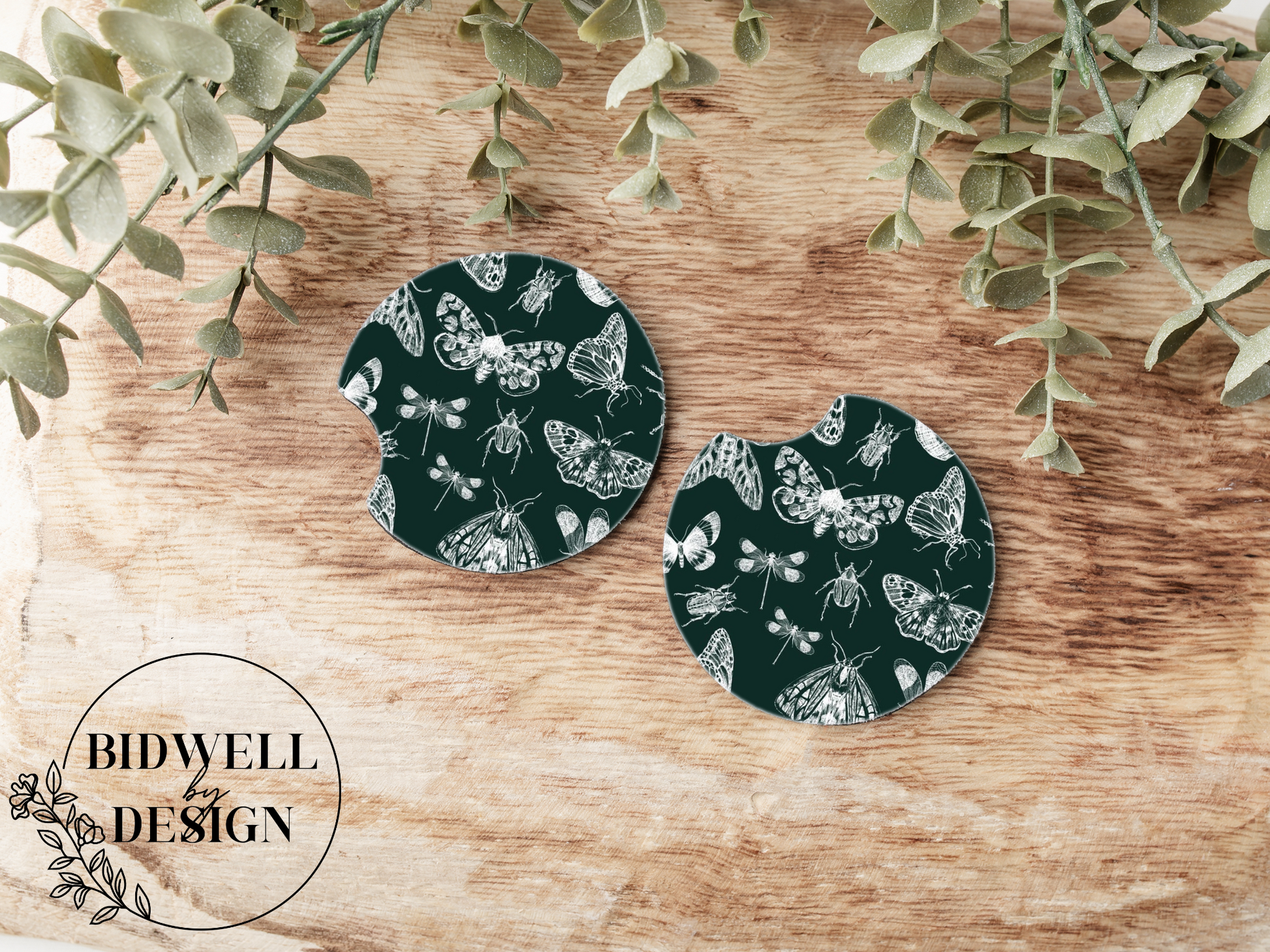 These stylish car coasters are the perfect addition to spruce up the inside of your car. These are neoprene car coasters which are flexible and have a soft back. The design is heat pressed into the coaster, so it is easy to clean and smooth to the touch! Each coaster is 2.75", has a non-slip bottom, and are easy to clean. These come in a set of two. Please make sure to measure your cupholders to make sure these are a good fit, but these will fit most vehicles.