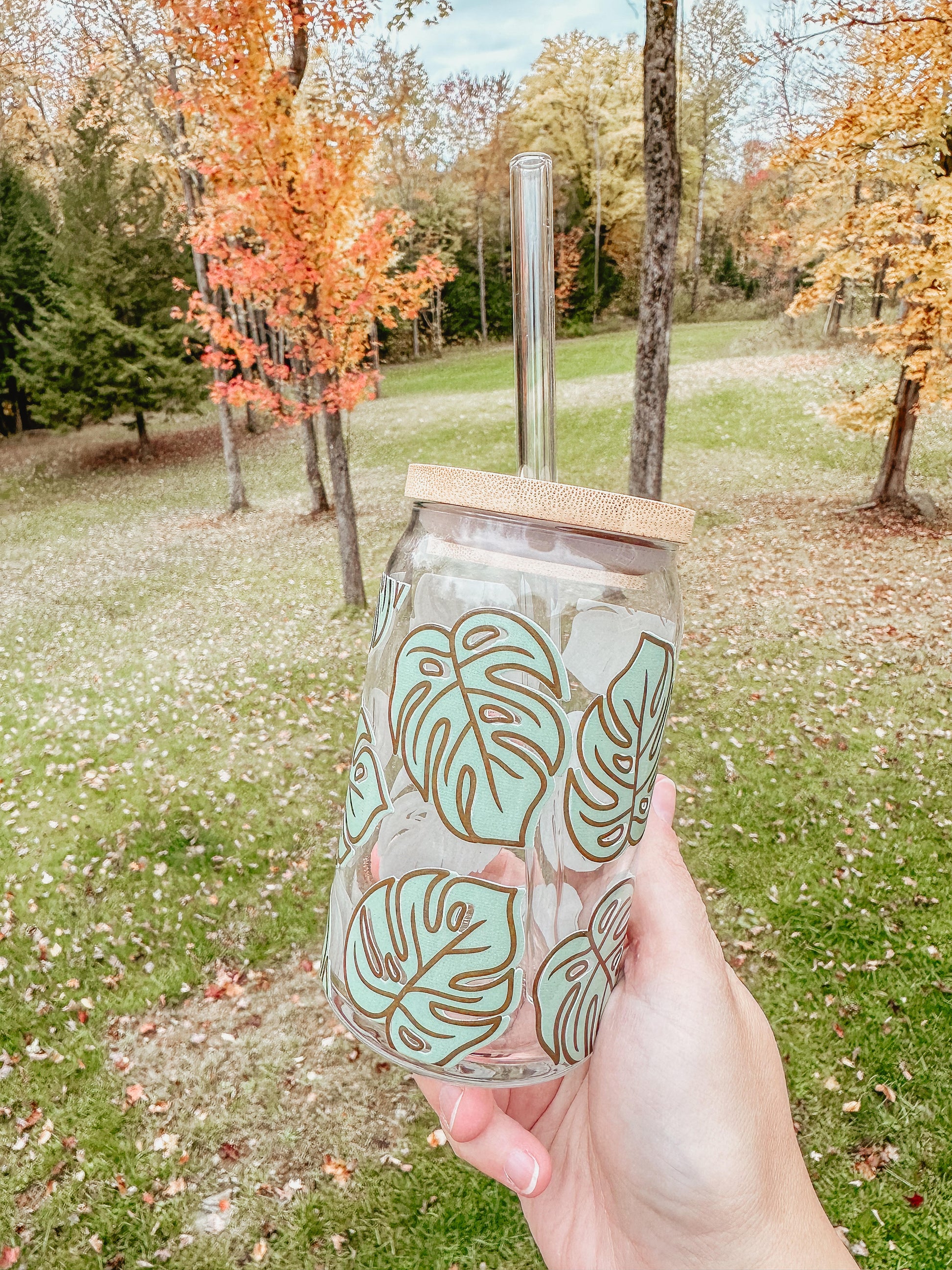 This trendy glass is the perfect iced coffee cup for the plant lover in your life! The glass pictured below is 16oz. All of our cups are made with permanent/waterproof uv decals and come with a bamboo lid & reusable glass straw. All glasses are handwash only and come with care instructions in each package!