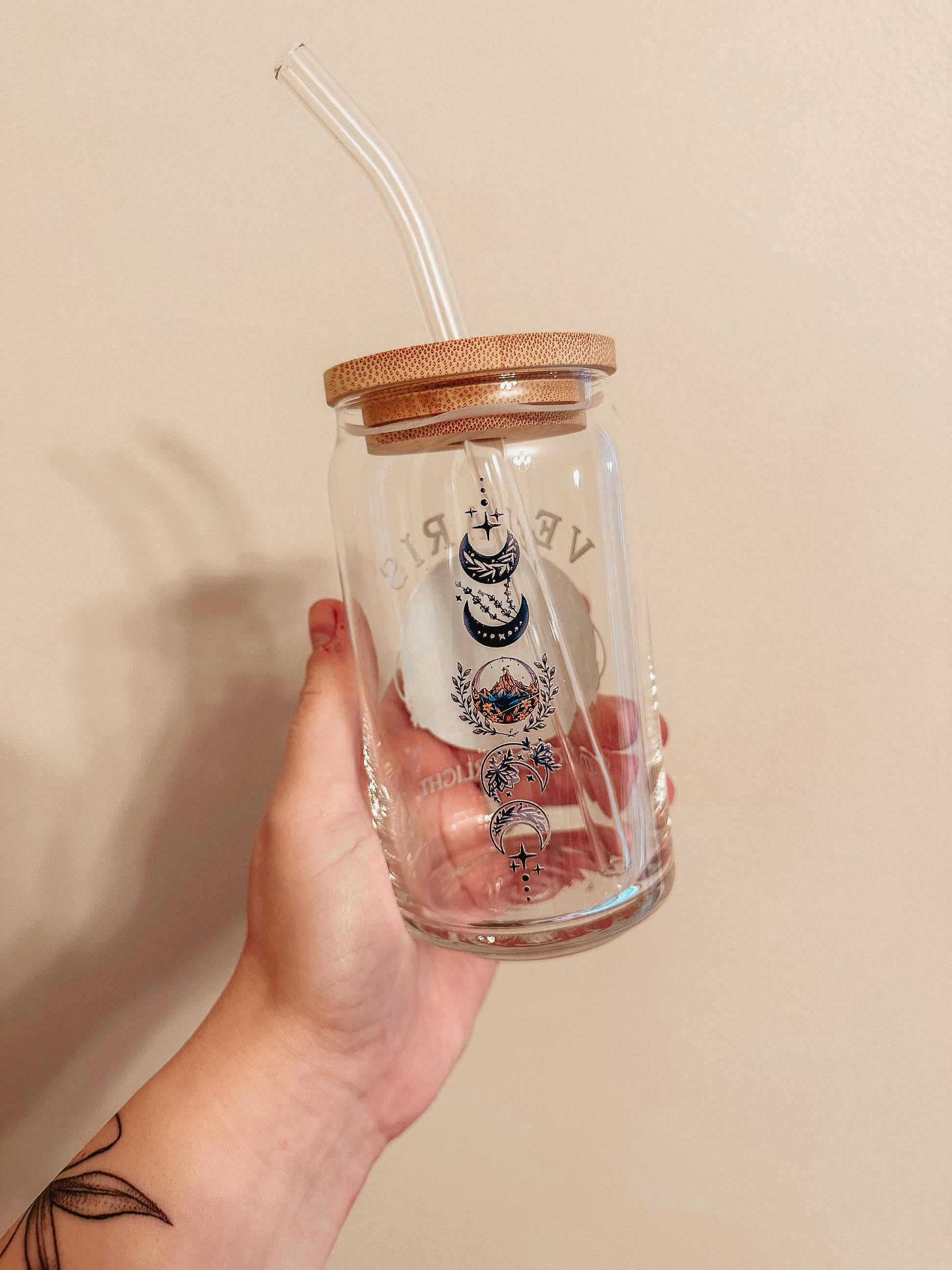 This trendy glass is the perfect vibe for ACATOR lovers! The glass pictured below is 16oz. All of our cups are made with permanent uv decals and come with a bamboo lid & reusable glass straw. All glasses are handwash only and come with care instructions in each package!