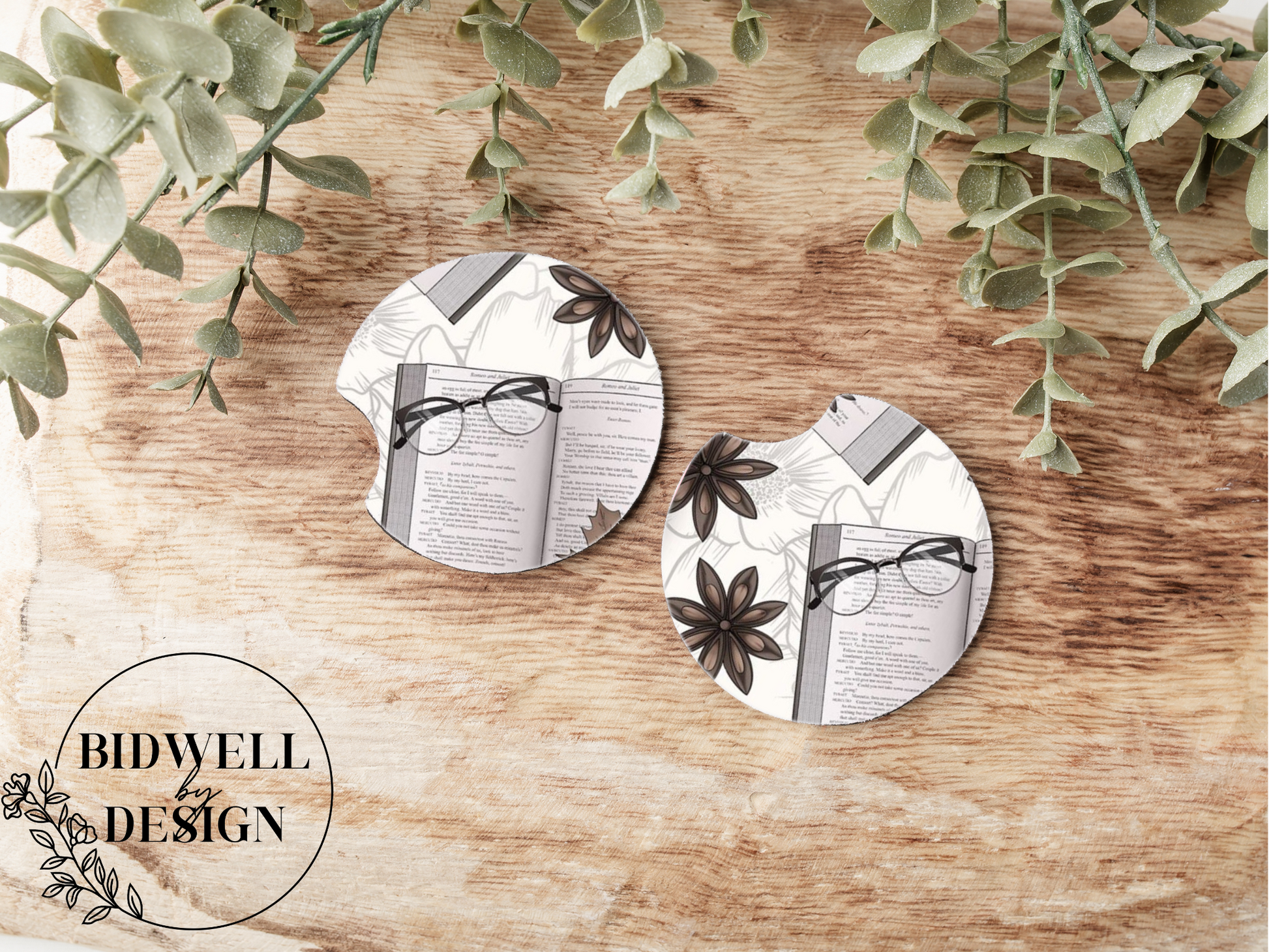 Books & Glasses Car Coasters