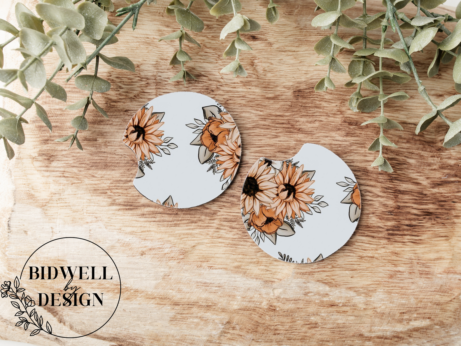 These stylish car coasters are the perfect addition to spruce up the inside of your car. These are neoprene car coasters which are flexible and have a soft back. The design is heat pressed into the coaster, so it is easy to clean and smooth to the touch! Each coaster is 2.75", has a non-slip bottom, and are easy to clean. These come in a set of two. Please make sure to measure your cupholders to make sure these are a good fit, but these will fit most vehicles.
